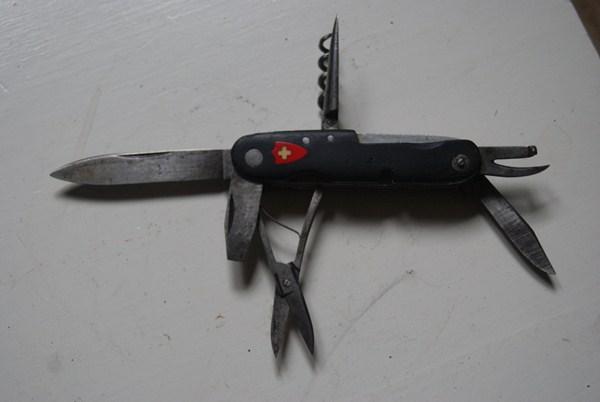 Keď sa do mojej zbierky dostal tmavý Wenger, myslel som, že neobvyklé logo a v podstate celé črienky sú produktom domácej úpravy nejakého šikovného majstra. Nedávno som ale narazil na túto fotku, na ktorej je rovnaký nôž, s rovnakým logom, len má navyše nožnice. Takže predsa len to bude sériové prevedenie!